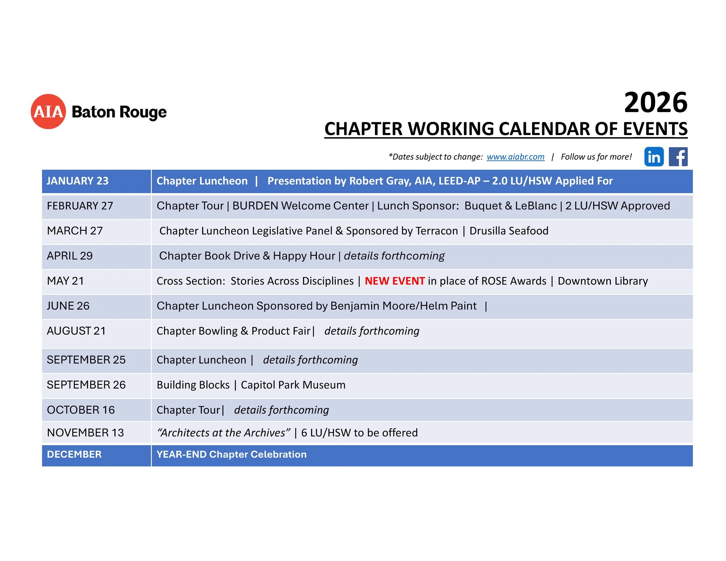2026 AIA Baton Rouge Event Calendar